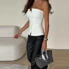• قصّة بدون حمالات لمظهر بسيط وأنيق.