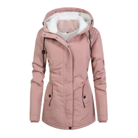 Sania | Dlouhá dámská bunda — Kapuce s šňůrkou a knoflíkové kapsy
