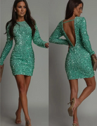 Tento přiléhavý šat je zdoben třpytivými flitry pro glam efekt. Jeho design s odhalenými zády dodává nádech sensuality. Ideální na večery a speciální akce.