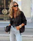 Tato třpytivá bunda na zip kombinuje styl a pohodlí. Její uvolněný střih se hodí na různé příležitosti. Ideální pro oživení vašich každodenních outfitů.