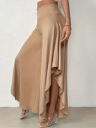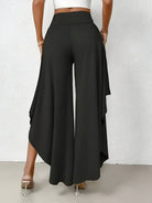 Tyto kalhoty se vyznačují svým plynulým a asymetrickým střihem, který dodává vaší outfitu nádech charakteru. Vysoký pas zeštíhluje siluetu, zatímco lehká tkanina poskytuje pocit pohodlí po celý den. Ideální pro uvolněný, ale sofistikovaný vzhled, ať už ve městě nebo na dovolené.