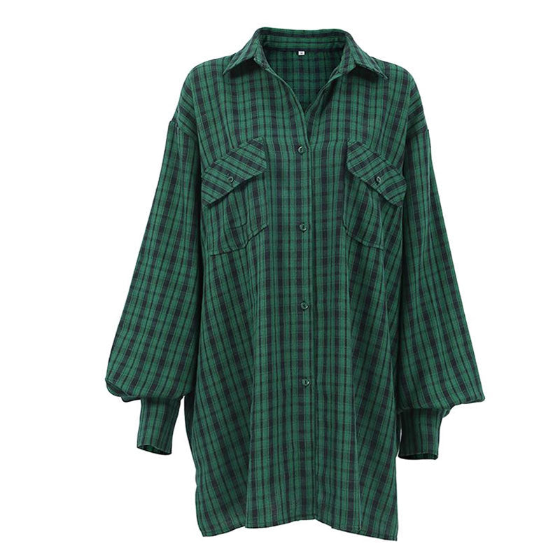 Wafa | Kariertes Hemd mit fallenden Schultern
