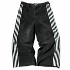 These men's pants feature a retro design with distinctive stripes along the side seams. Their loose fit ensures optimal comfort while offering an urban look. Available in light blue or black, they suit various occasions.