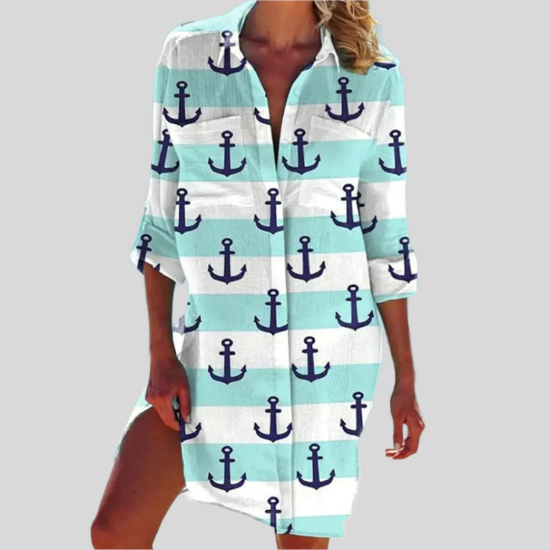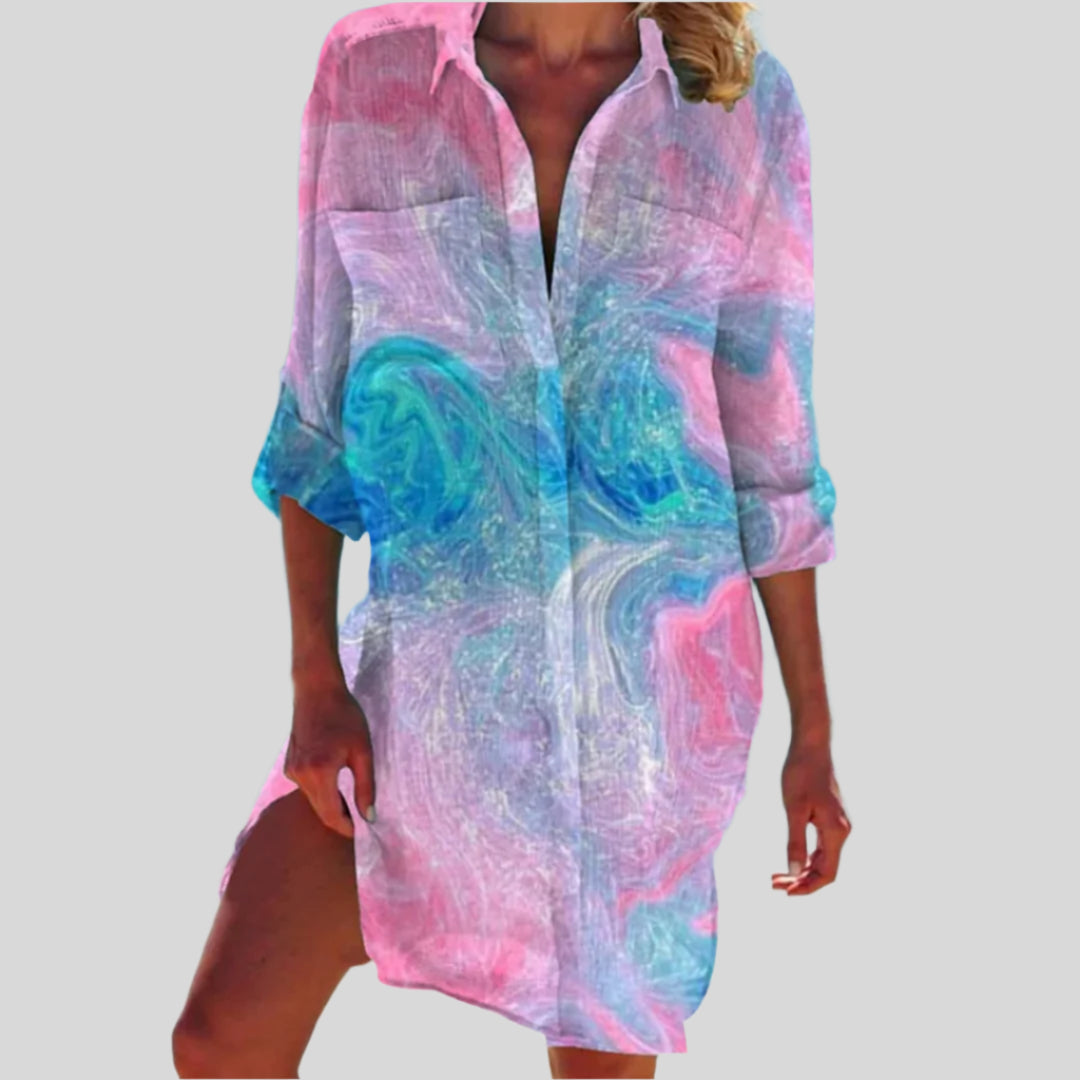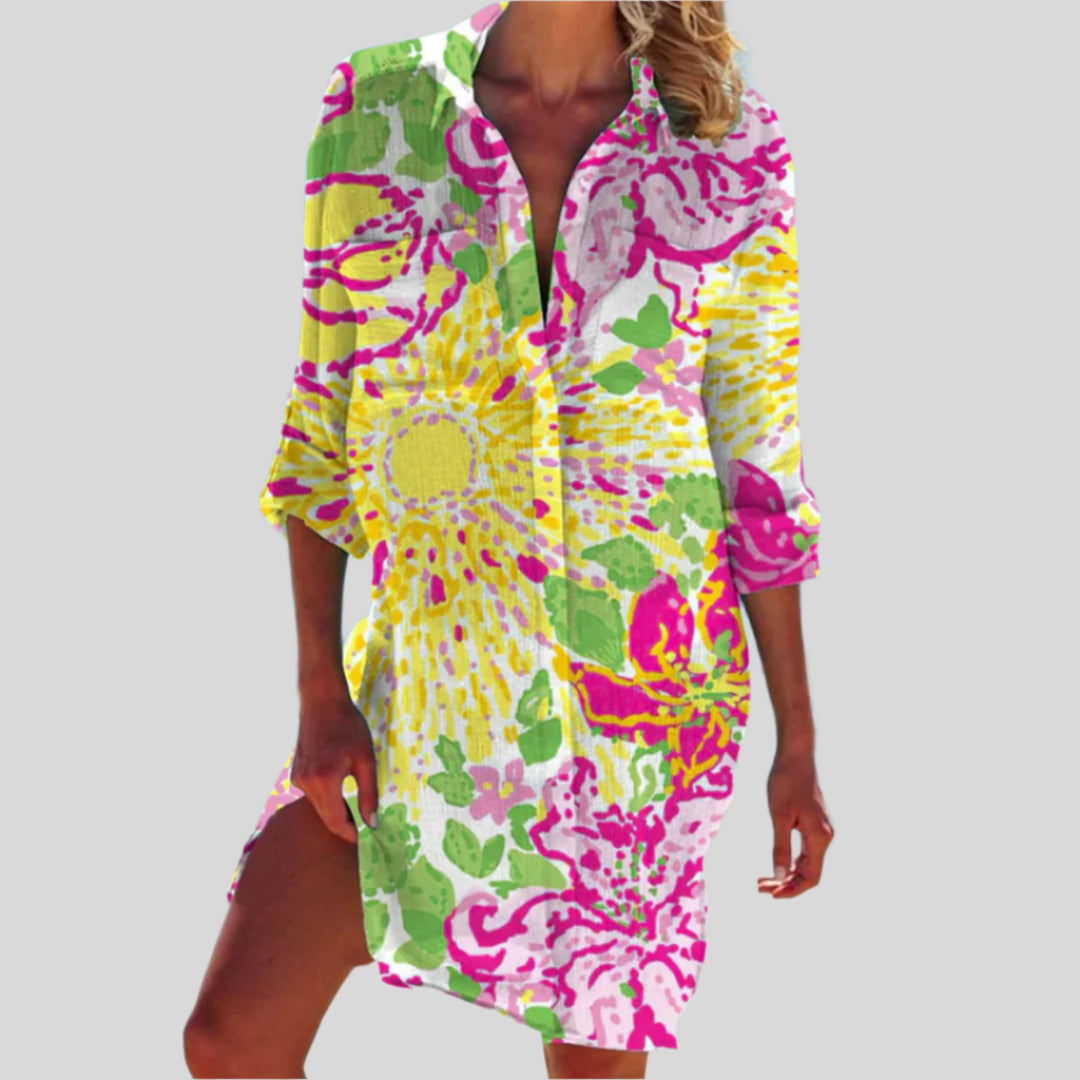 Olivia | Napillinen kesämekko pitkillä hihoilla