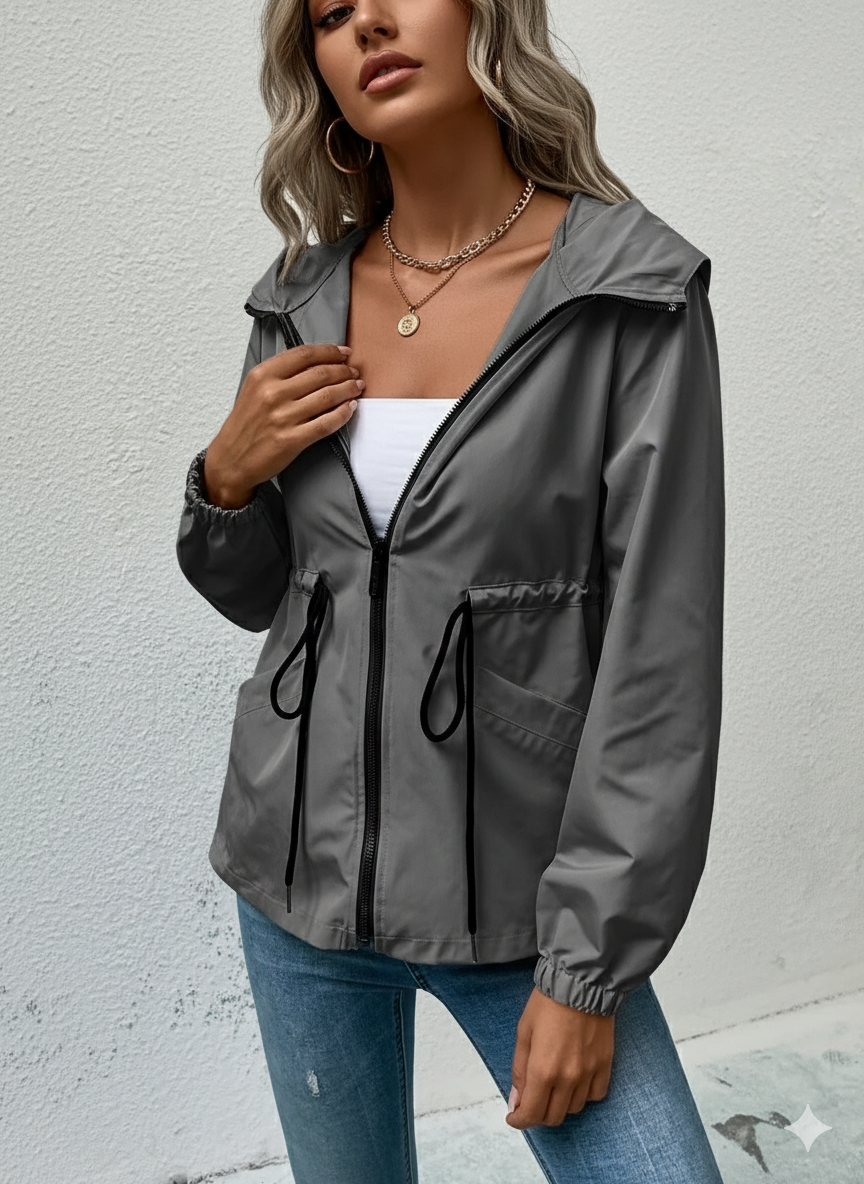 Tämä kevyt hupullinen takki yhdistää kaupunkityylin ja täydellisen mukavuuden puolikauden päivillesi. Sen moderni ja säädettävä leikkaus narujen ansiosta korostaa vartalon muotoa samalla kun se tarjoaa optimaalisen liikkuvuuden. Täydellinen kävelyille, toimistolle tai rentoihin ulkoiluihin, siitä tulee päivittäinen välttämättömyys.