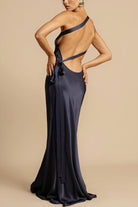 Tämä pitkä, yhdellä hihnalla varustettu mekko tarjoaa sulavan ja elegantin siluetin. Sen epäsymmetrinen muotoilu korostaa siluettia hienostuneesti. Täydellinen iltoihin ja erityisiin tilaisuuksiin.