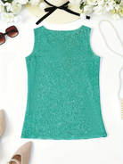 Cette top sans manches présente une encolure en V flatteuse. Entièrement ornée de sequins, elle apporte une touche de brillance à votre tenue. Parfaite pour les occasions festives ou pour rehausser un look décontracté.