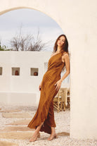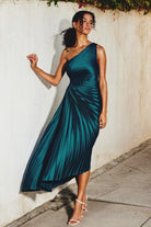 השמלה הארוכה לערב מפתיעה בעיצובה הנועז עם רצועה אחת ובבד הקפיצי העדין שלה. המותן המתאימה מדגישה את הסילואטה באלגנטיות, בעוד שסיום הזרימה שלה מעניק לה מראה מתוחכם. אידיאלית כדי לזרוח באירועים פורמליים או בערבים מיוחדים.