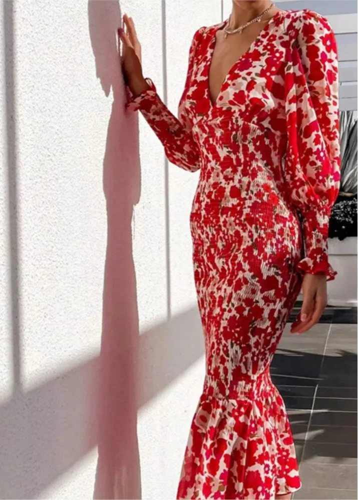 Andrea | Abito Lungo Bohemien Chic – Eleganza Rossa e Spirito Romantico