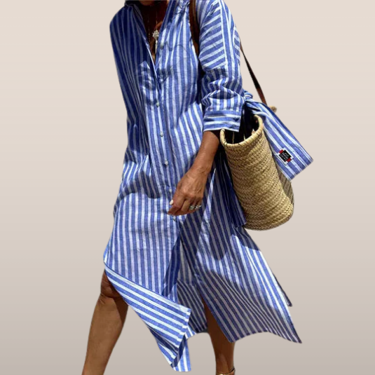 ジナ | ストライプのゆったりとした軽やかなシャツワンピース