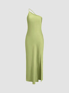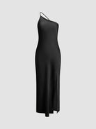 このエレガントなロングドレスは、現代的なカットとクラシックなディテールを組み合わせて洗練されたシルエットを作り出します。背中が開いていて、脚の部分に控えめなスリットがあり、シンプルな印象を保ちながらセクシーさを加えています。特別な機会やフォーマルな夜に最適です。