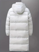 Este abrigo largo con capucha para mujer ofrece un calor envolvente mientras mantiene un aspecto moderno y urbano. Diseñado para enfrentar los días fríos, combina comodidad, protección y elegancia en todas las circunstancias. Su diseño limpio se adapta fácilmente a tus atuendos invernales para un estilo chic y desenfadado.