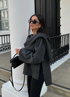 Tento plášť s kapucňou spája nadčasovú sofistikovanosť a moderné pohodlie. Jeho plynulý dizajn s integrovaným šálom pridáva každej súprave dotyk grácií.