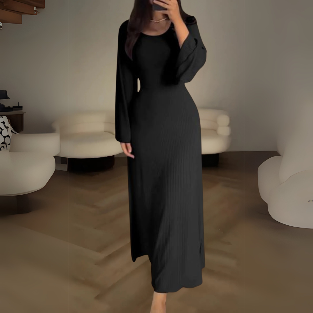 Louna | Dlhá Elegantná Šaty – Dlhé Rukávy a Refinovaný Strih