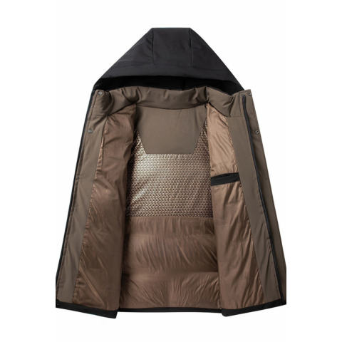 Denna vinterjacka med huva erbjuder optimal isolering samtidigt som den behåller en modern och ren stil. Dess ergonomiska design garanterar långvarig komfort mot kyla och vind. Perfekt för att möta vintersäsongen med självförtroende och elegans.